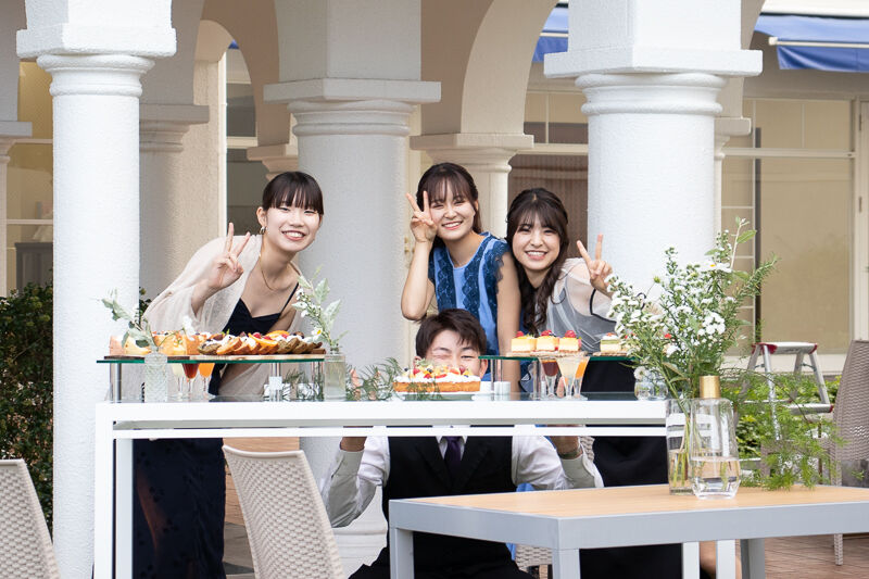 挙式後にここで歓談したり、スイーツビュッフェの際にこちらに移動してお食事するなどいろんな使い方ができるそう。