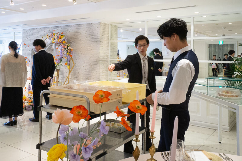 こちらでも装花の位置やゲストの配置など式場のスタッフさんたちで調整。