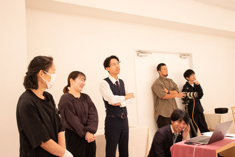 結婚式でよく見る「一緒に写真撮ろー!」って感じの写真撮影もありました。ちゃっかり紛れ込むたかつースタッフ。
