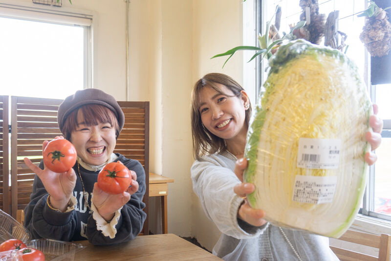 「トマトも白菜もめちゃ大きくて形や色がキレイですね〜!」