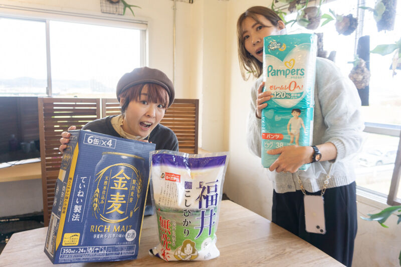 もちろんお茶、ビールなどの重たい食料品やトイレットペーパー、シャンプー、洗剤、オムツなども取り扱っています。