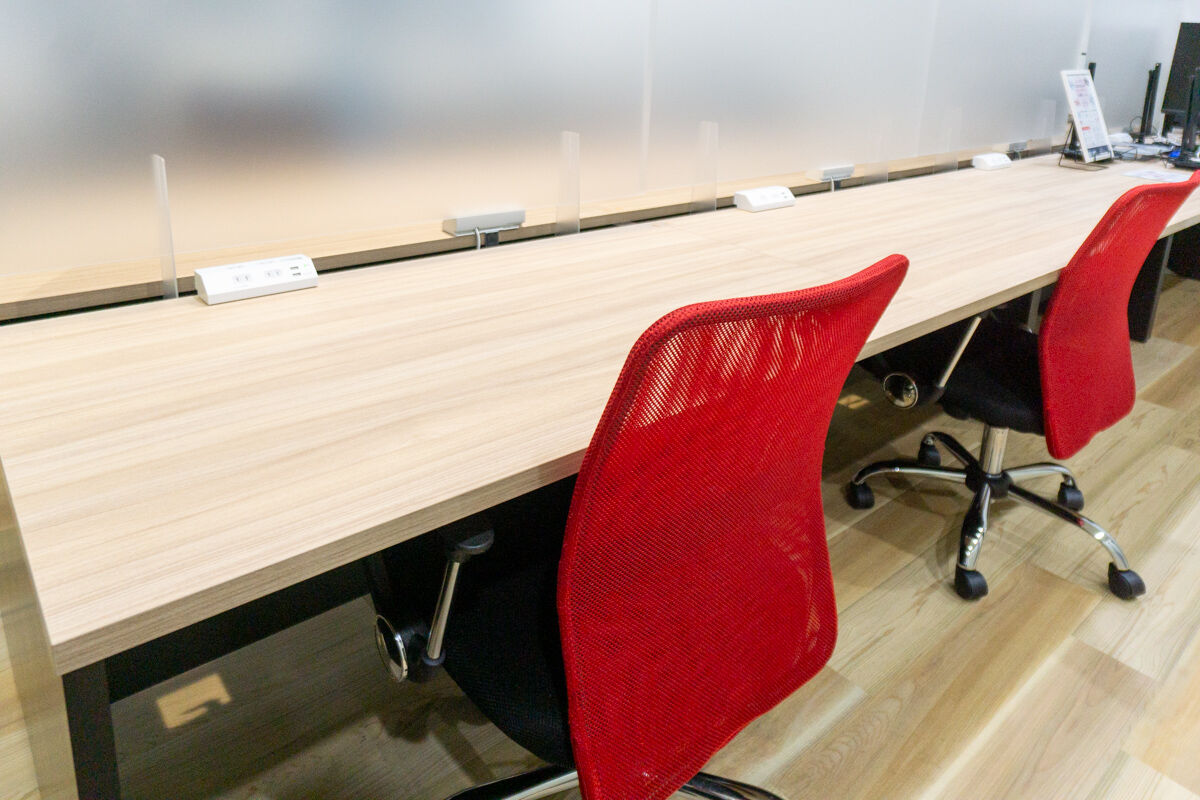 モニターやタブレット、テキストにノートなどを広げられるように、1席あたりのデスク幅や奥行はたっぷり!