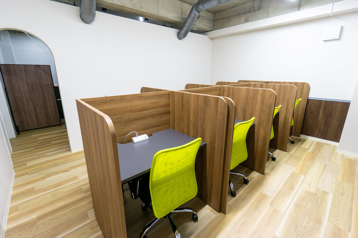 WEB会議OKな超集中ゾーンは2部屋あり、こちらは個別ブースタイプ。