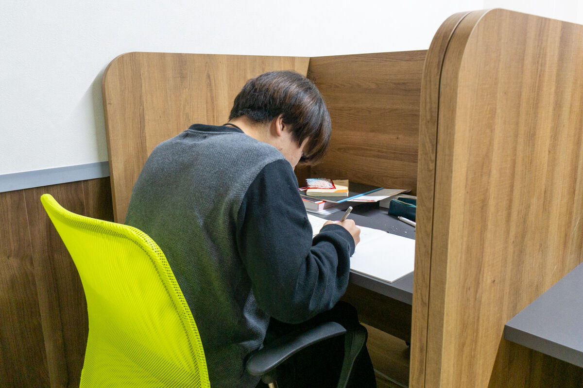 「利用者さんのなかには、"誘惑が多いお家やカフェとは違って、気分転換にもなり集中しやすい"と言ってく下さる方もいます」