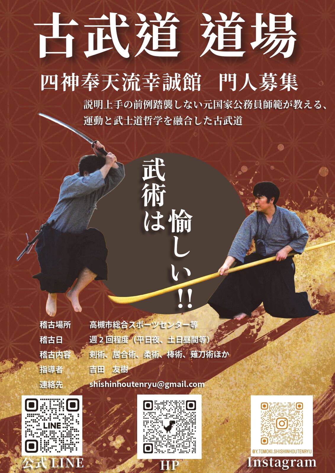 前例踏襲しない元国家公務員師範が、高槻市で古武道を教える「四神奉天流 幸誠館(ししんほうてんりゅう こうせいかん)」では、無料体験会を開催!