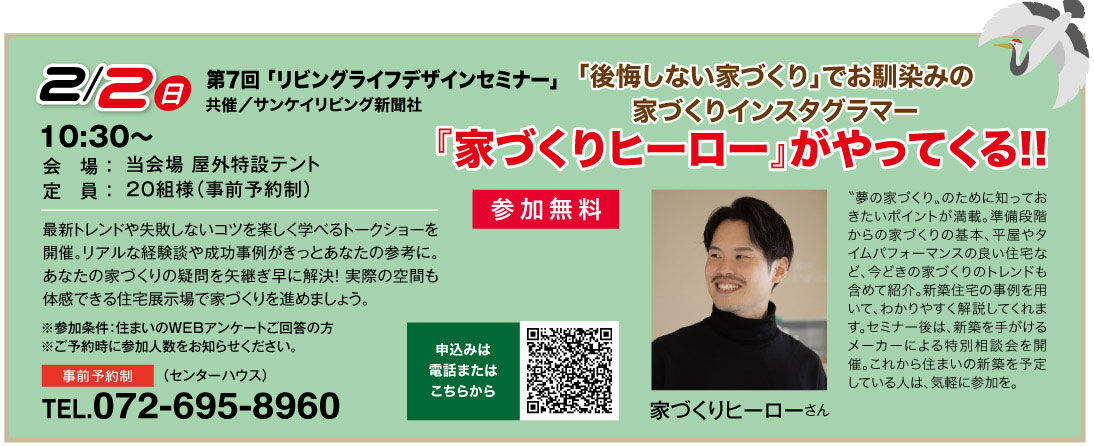 「2/2(日)には家づくりインスタグラマーの家づくりヒーローさんがやってくるんやって!