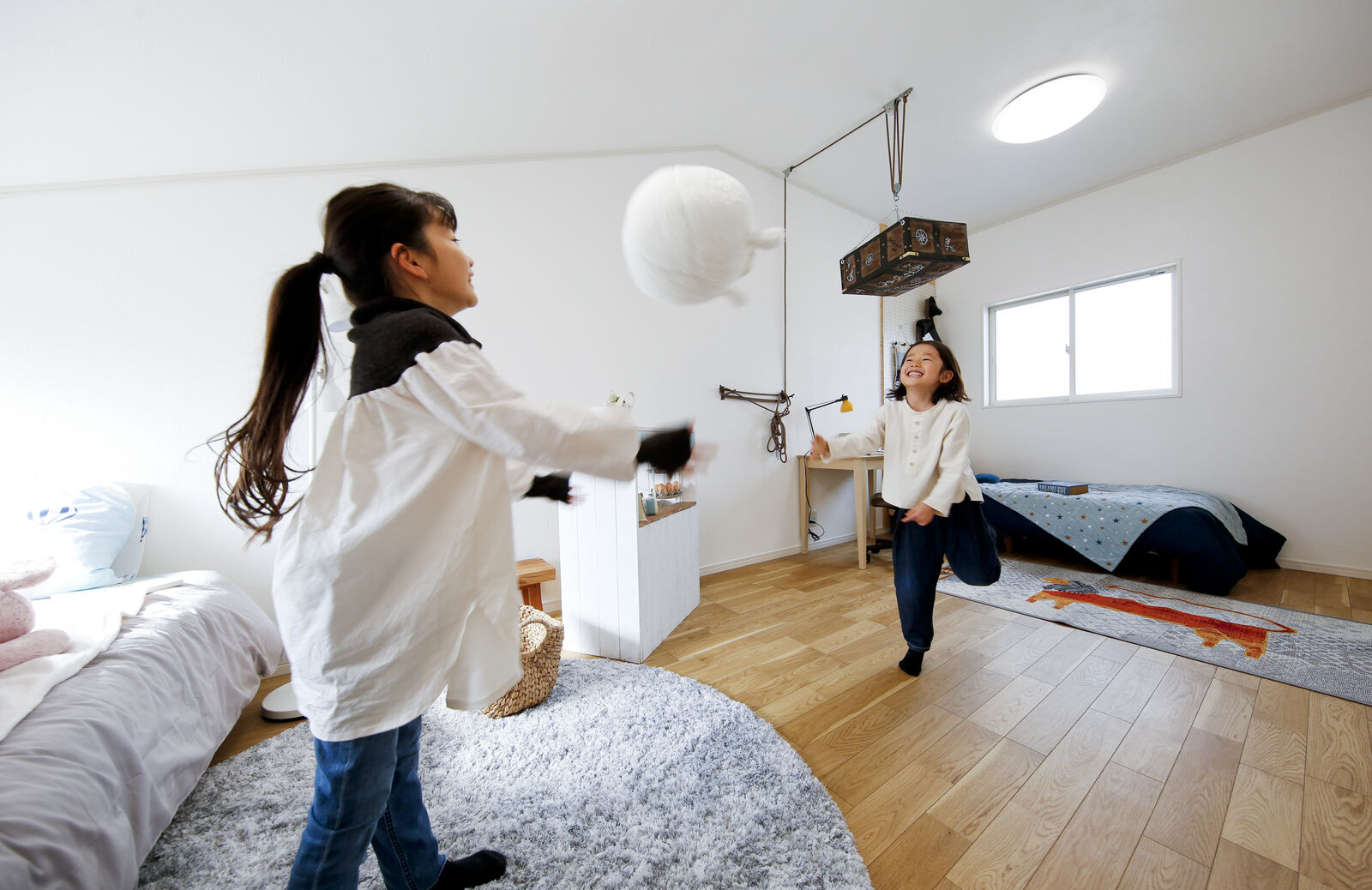 壁の色も白にしておけば、インテリアを変えるだけで男の子でも女の子でもどちらでも使えます。