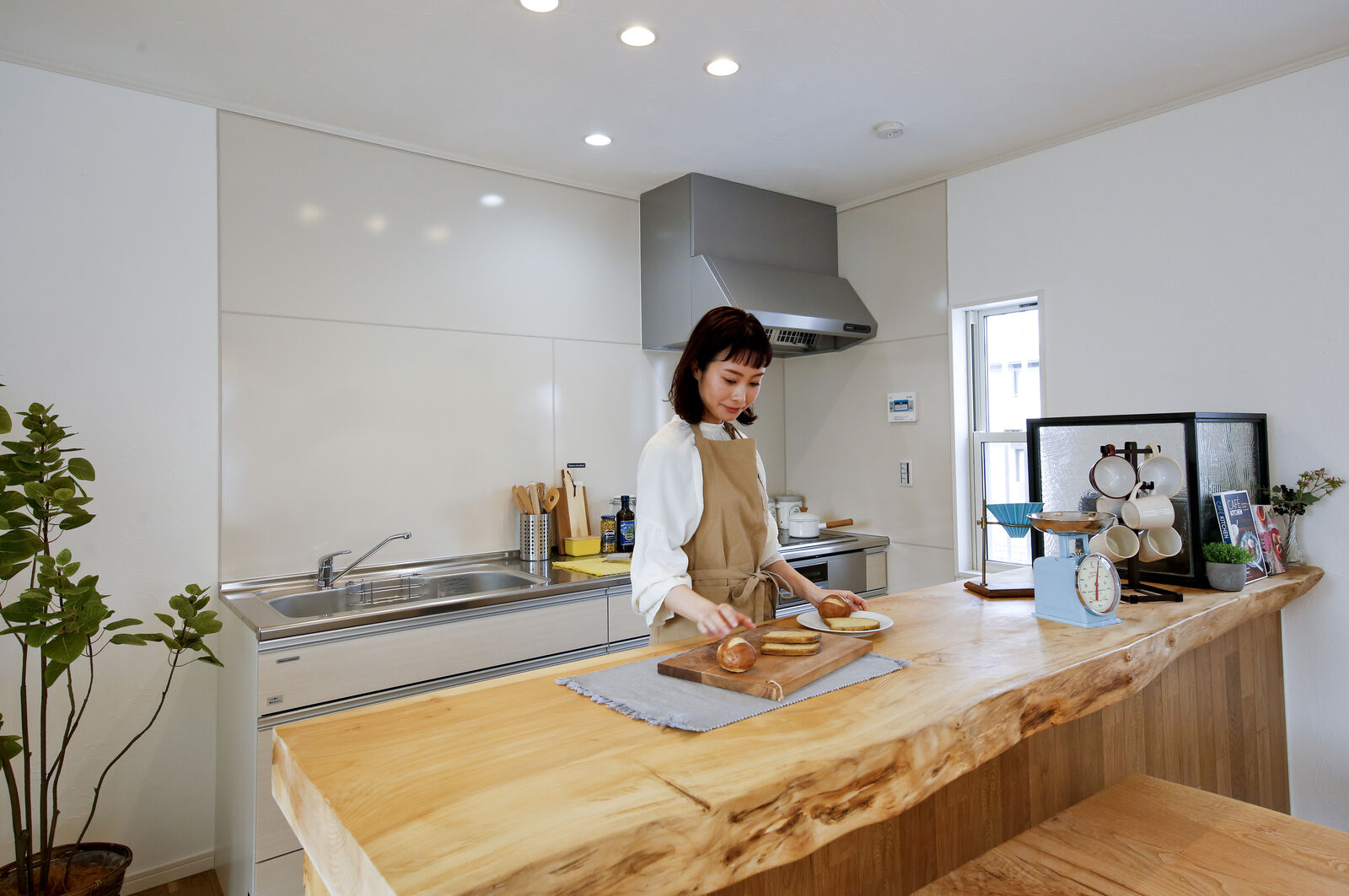 キッチンには無垢の一枚板のカウンター。