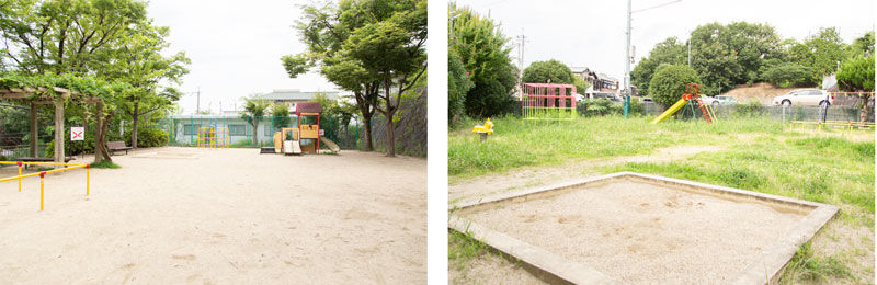左:松が丘一丁目しょうぶ公園(徒歩9分)、右:松が丘一丁目さくら公園(徒歩6分)