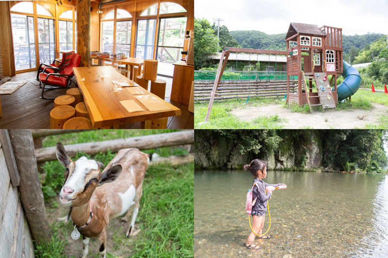 川が目の前にあって、遊具や可愛いヤギさんもいます!