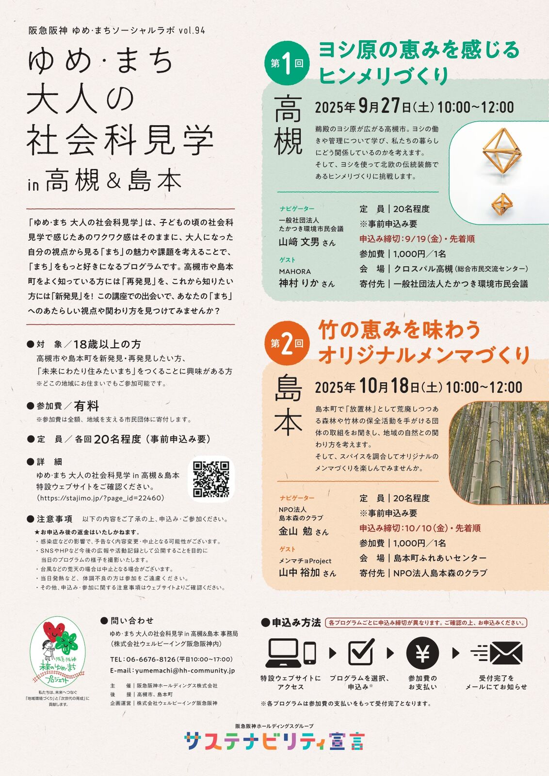 阪急阪神ホールディングスでは、包括提携協定を締結している高槻市及び島本町の後援により、沿線で活動している市民団体等との協働イベント「ゆめ・まち 大人の社会科見学in高槻・島本2025」の高槻編を9月27日(土)に、また島本編を10月18日(土)にそれぞれ開催します。