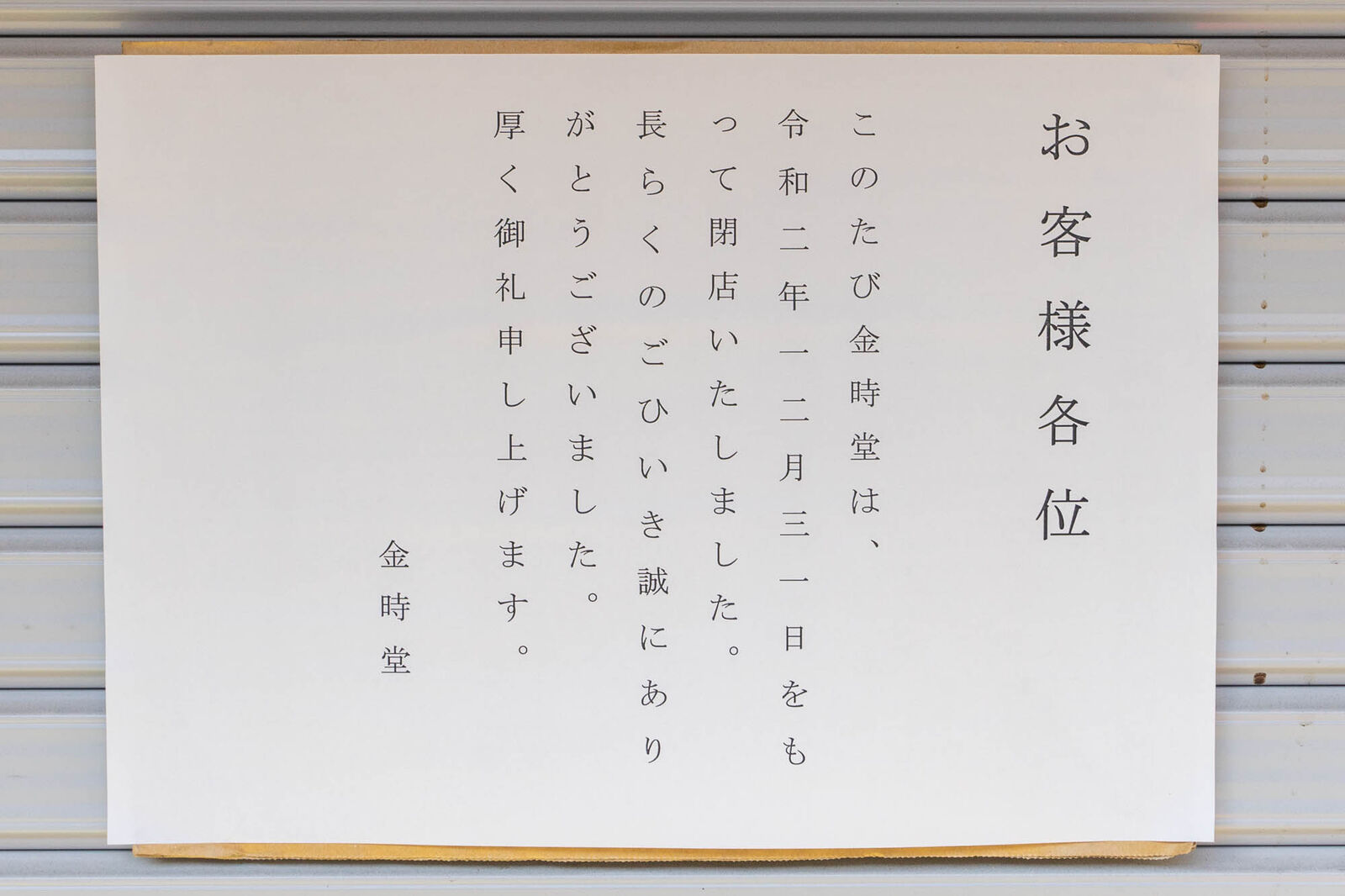 西国街道ぞい芥川町の「金時堂」が閉店してる