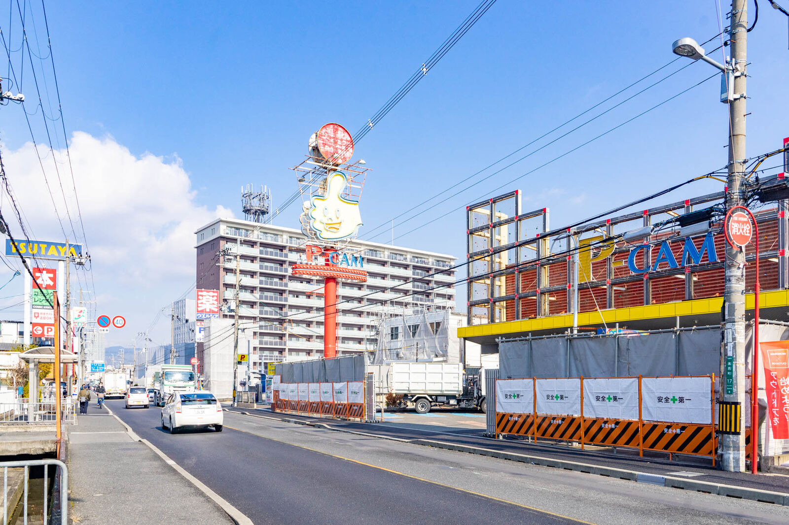 こっちの向かいにはTSUTAYAがあって、隣にはウエルシア。進んでいくと市役所のそばから高槻の駅周辺に出ます。