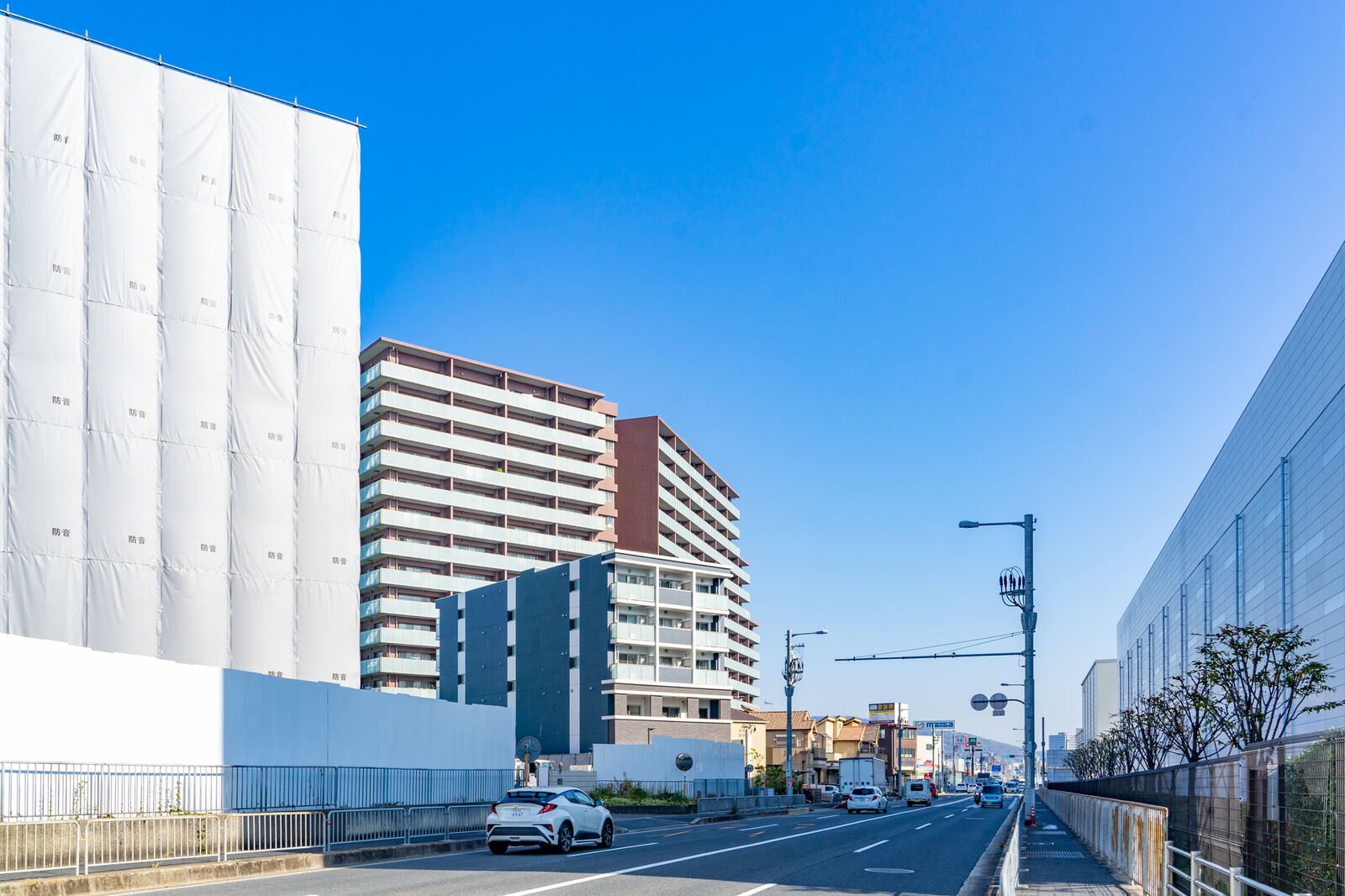 向かいには明治の工場があって、進んでいくとモスバーガーやロイヤルホストなどがあります。