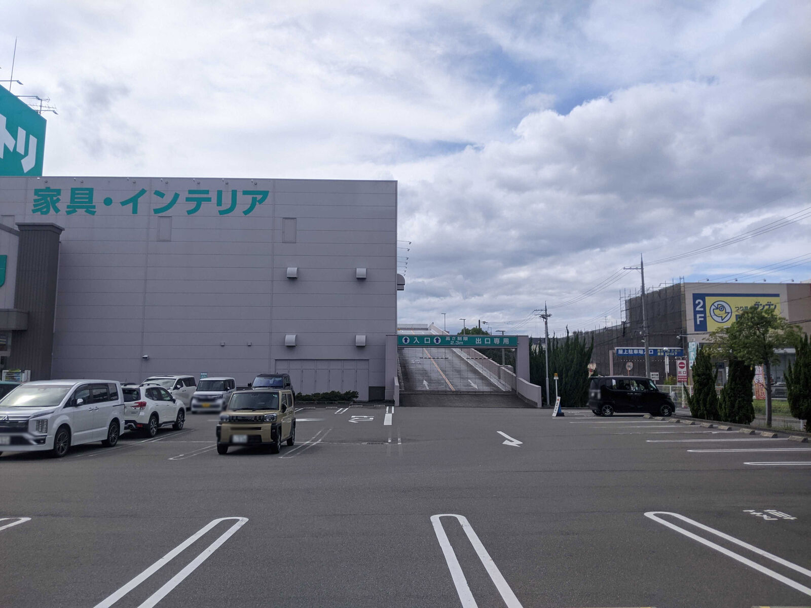 国道170号線ぞい大塚町の「ニトリ」「カインズ」や周辺の駐車場の状況