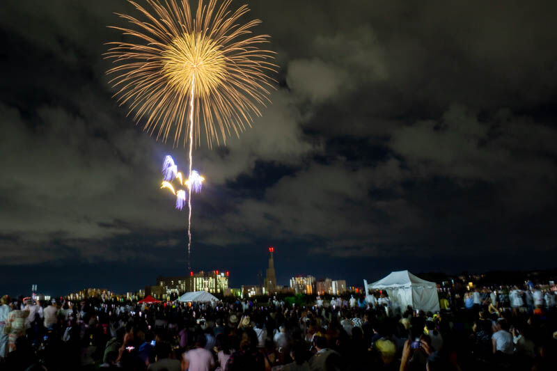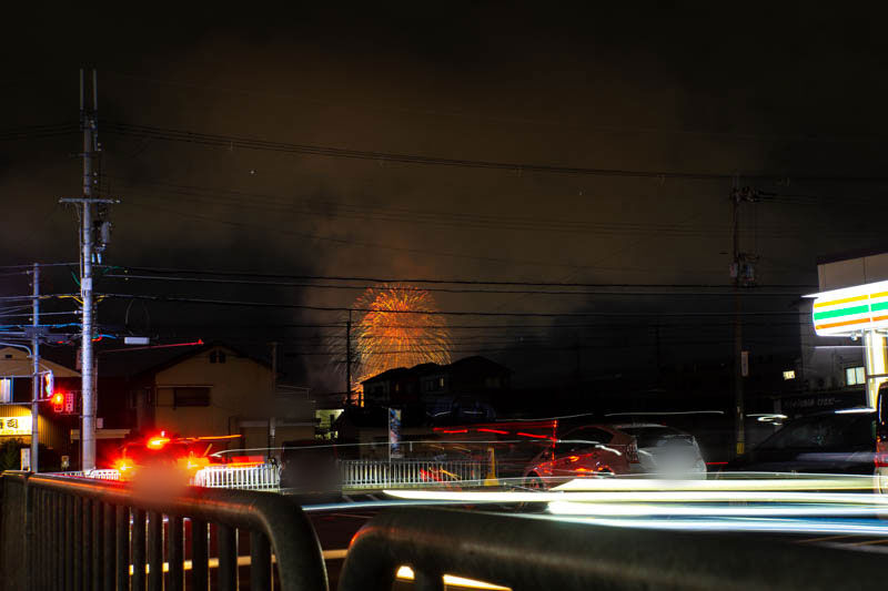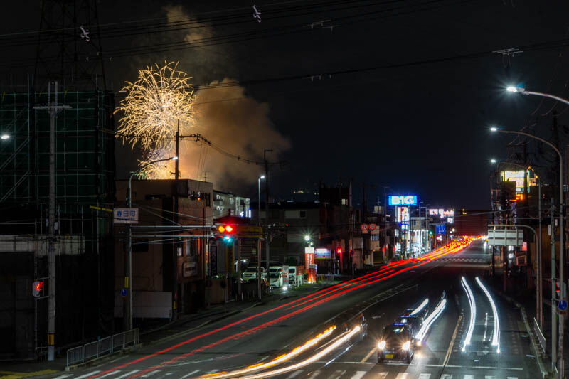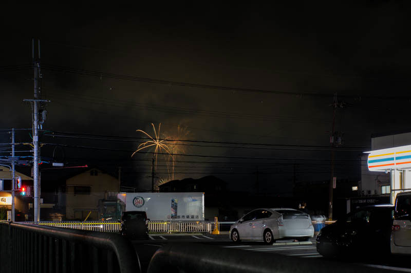 なんでここなん?って感じなんですが、意外と次の場所に行こうと思っていたら時間がなくて急遽、花火が見えた所で撮りました。