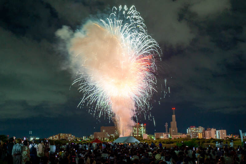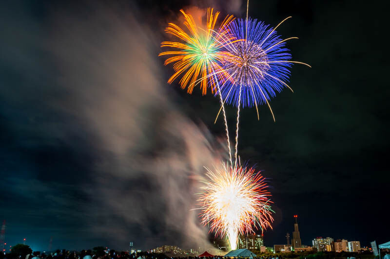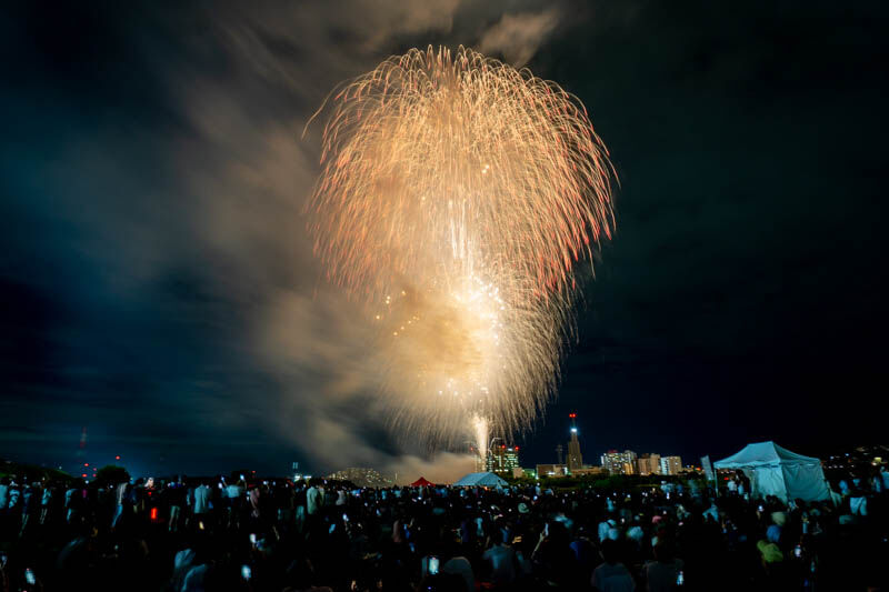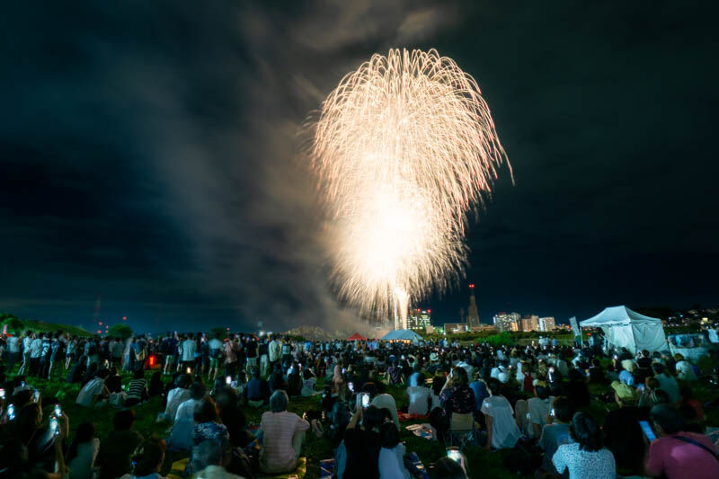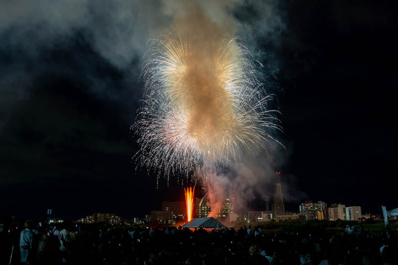 さっきぐらいの規模感か〜と思っていたら、いきなりめっちゃでかい花火があがってシンプルにフレームアウトしてしまった写真。