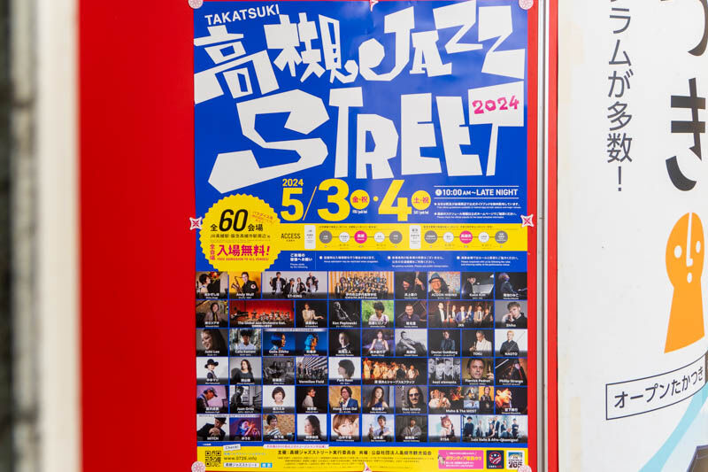 今年は5月3日・4日の10時〜夜まで、JR高槻駅・阪急高槻市駅・高槻城公園周辺約60会場が予定されています。