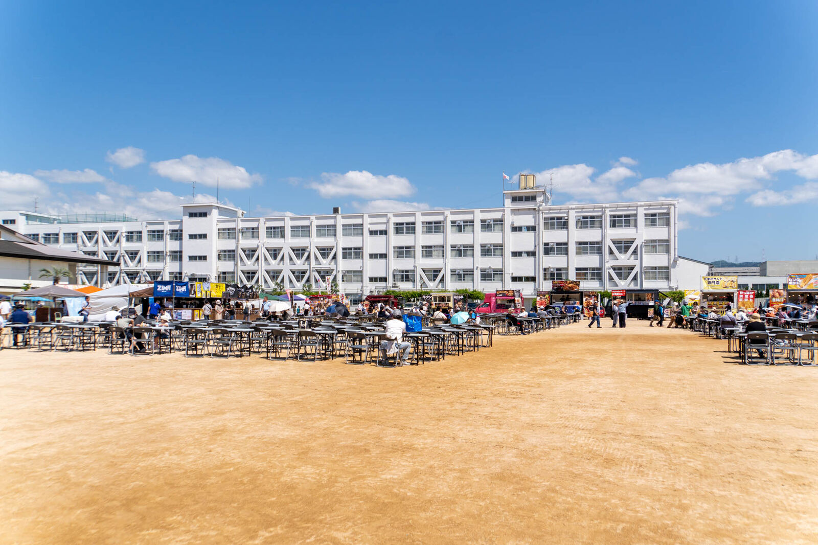 大きなステージがある高槻市立第一中学校グラウンド。