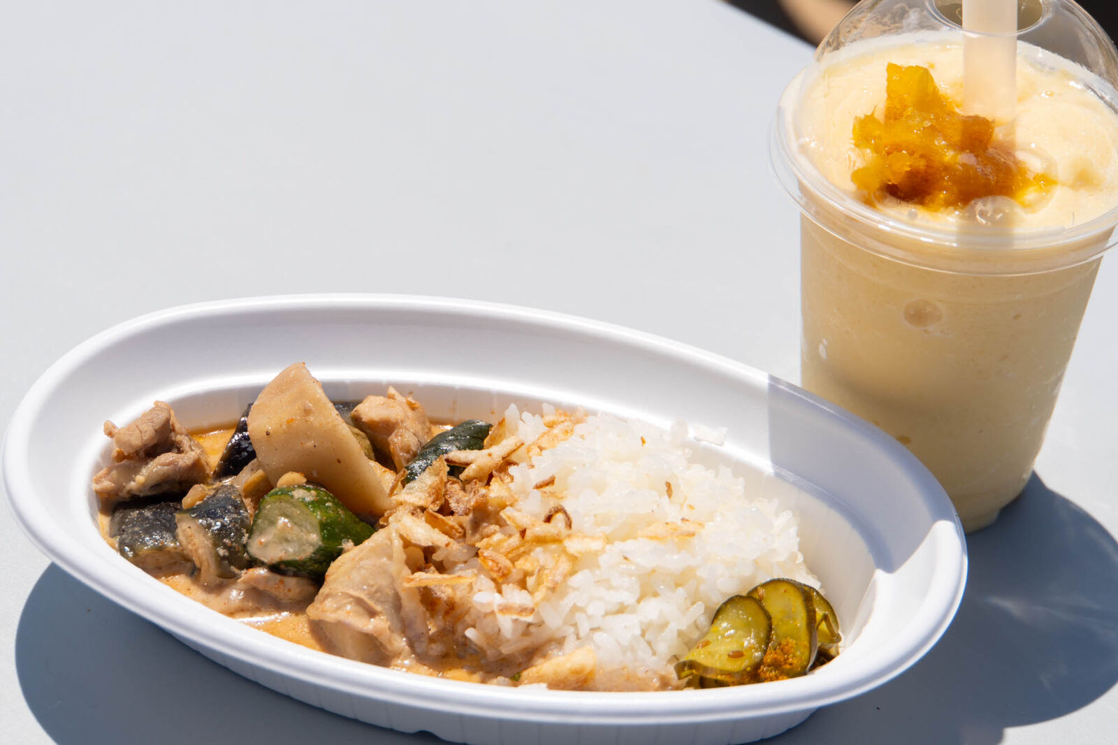 美味しそうなスープカレー(1000円税込)とマンゴースムージー(600円税込)を発見したので早速ゲット!