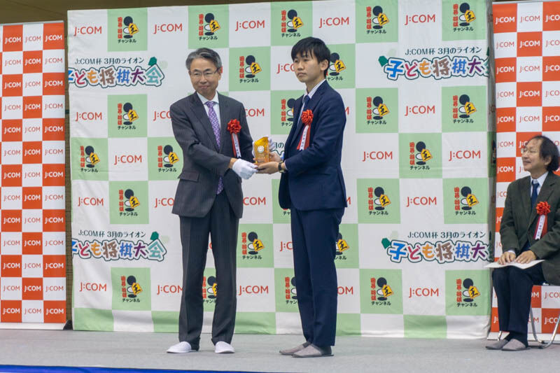 そして、開会式では新たに棋士となる四段昇段者、井田明宏四段と横山友紀四段へ、「J:COM賞」の贈呈もありましたよ↓