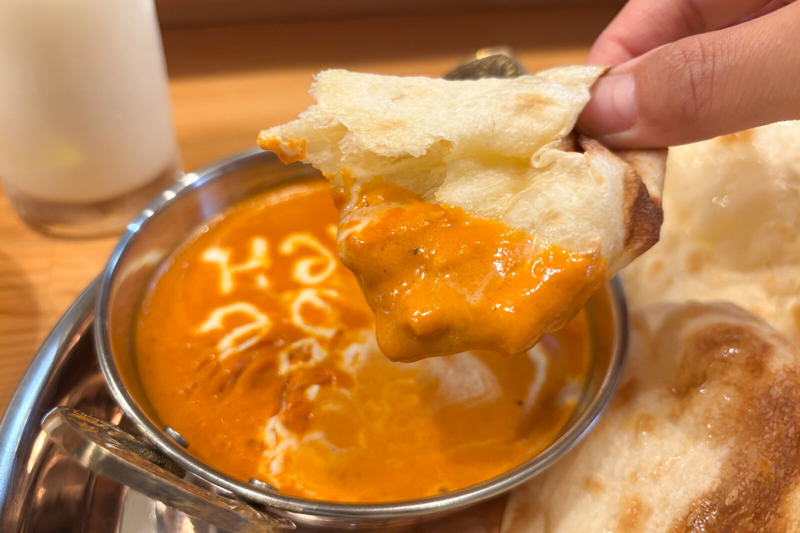 そして今回、マーヤが注文したのは「バターチキンカレーセット」。ドリンクはラッシーにして、ナンを注文し、辛さは2辛にしました〜!