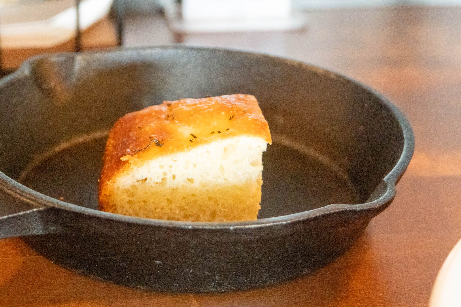 パスタとともにやってきたのはフォカッチャ。フワッもちっとした食感でローズマリーの風味が◎