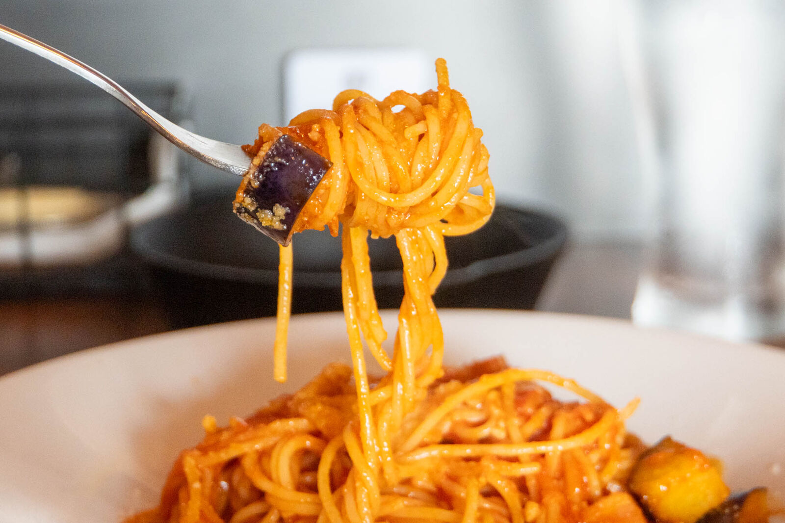 ナスとベーコンもたくさん入っていて、具材の食感を感じられるサイズ感も好き!