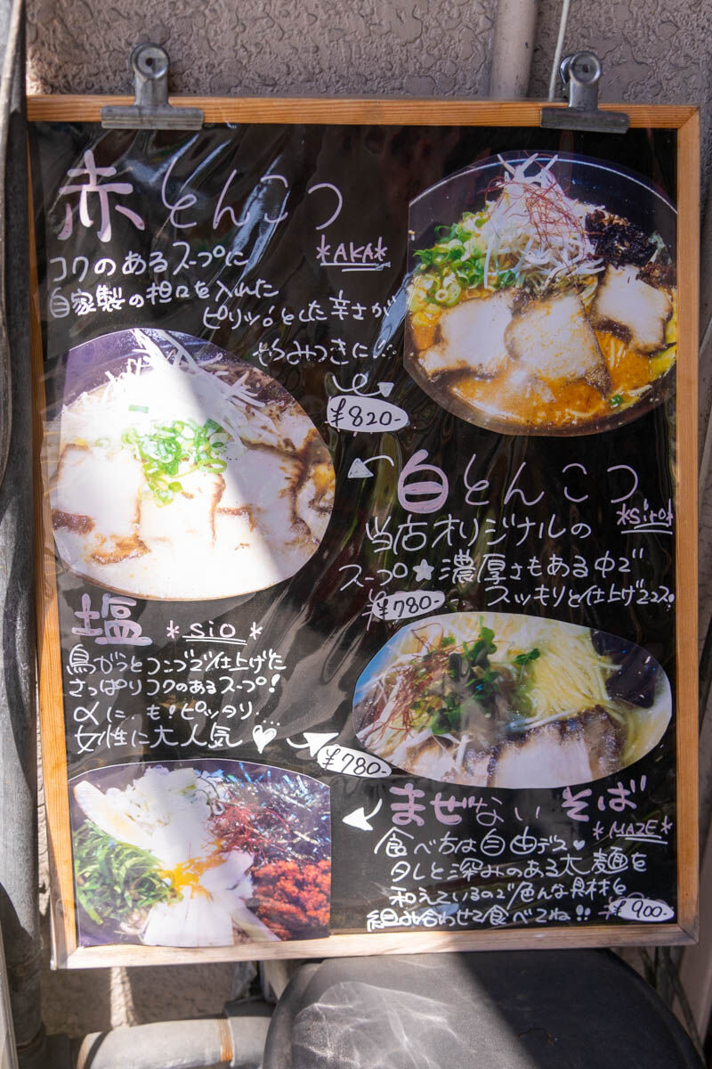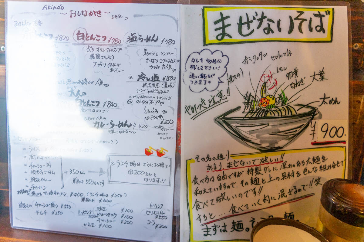 外にあったメニュー。ラーメンに並んでまぜないそばもラインナップ。