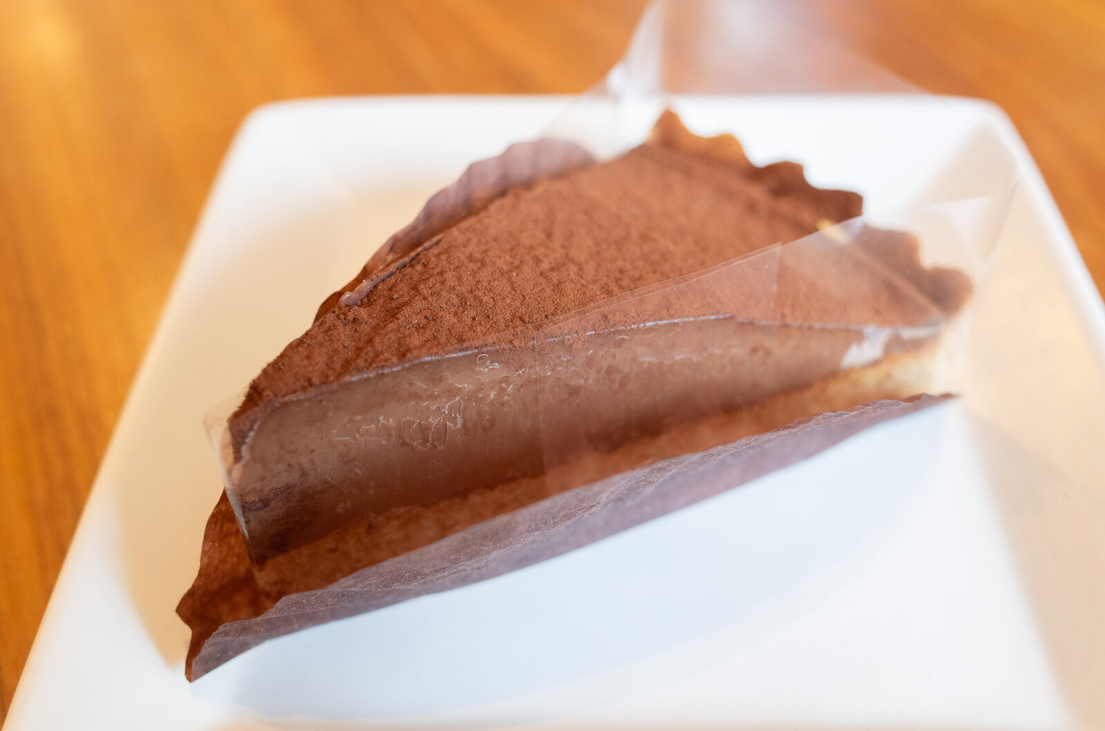 タルト生地は1つ目に食べた「かんきつのタルト」と同じですが、先ほどのさっぱりとした美味しさと打ってかわかって濃厚なチョコレートムースがのっています。