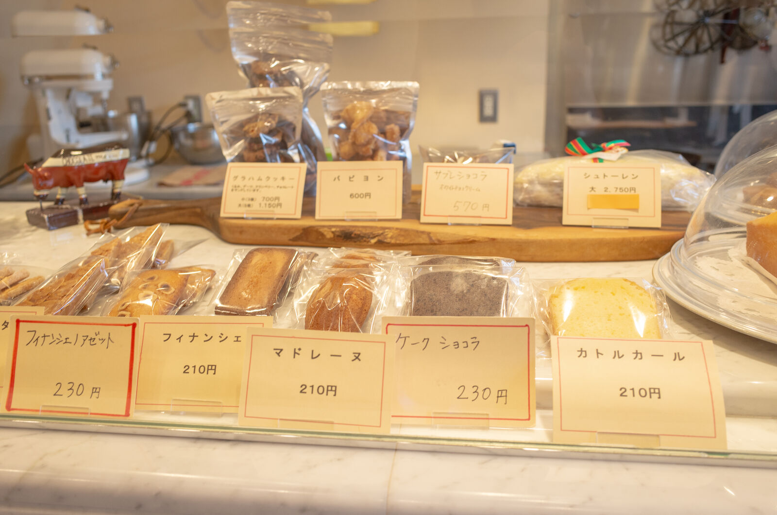 基本的にはシュークリームとタルトがメインメニューとなっており、その他焼き菓子も販売しています。