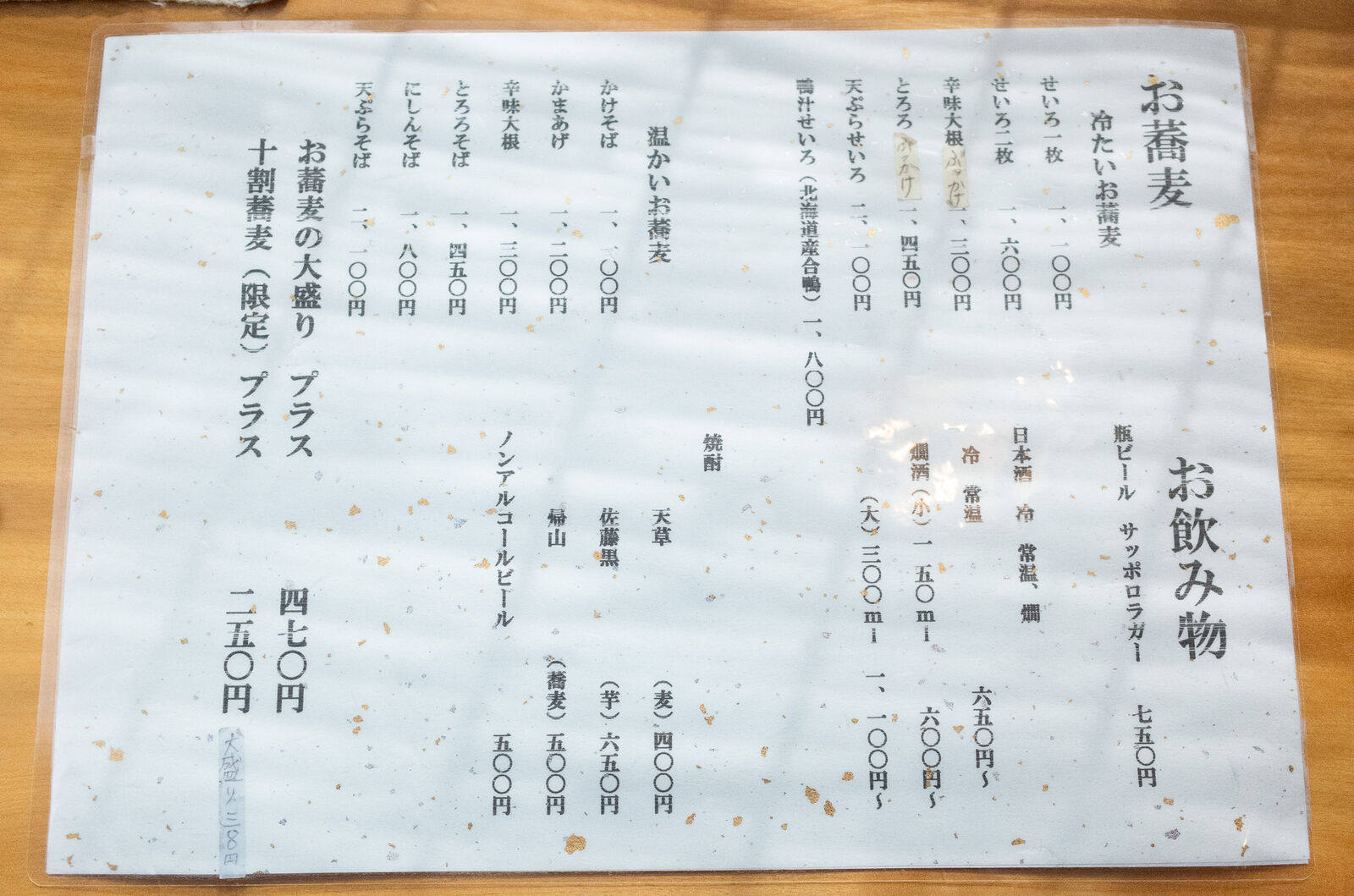 たくさんのお蕎麦のメニューに心躍ります。