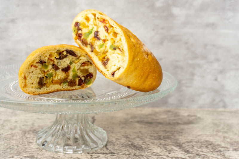 外側は硬めのパンなんですが、中のフルーツが柔らかいです!ドライフルーツがギュッと濃縮されたとってもおしゃれなパン!