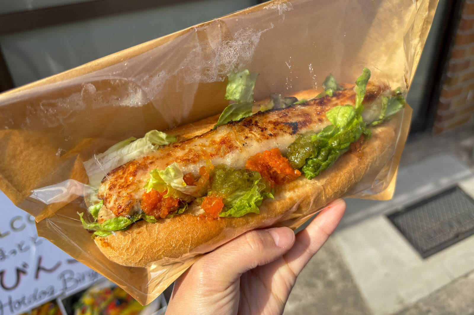 パンのカリッとした食感にレタスのシャキシャキ感、ソーセージのジューシーさが絶妙にマッチ!