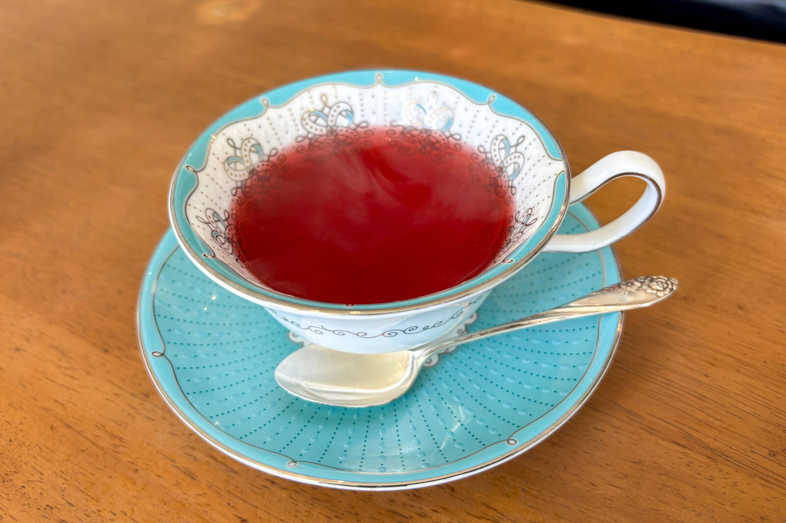 またサラダにはコーンドレッシングがかかっていて、野菜とよく合ってこちらも美味しかったですよ〜!そして店員さん曰く、紅茶もオススメということで「ストロベリーガーデン」という紅茶も注文しましたよ〜!