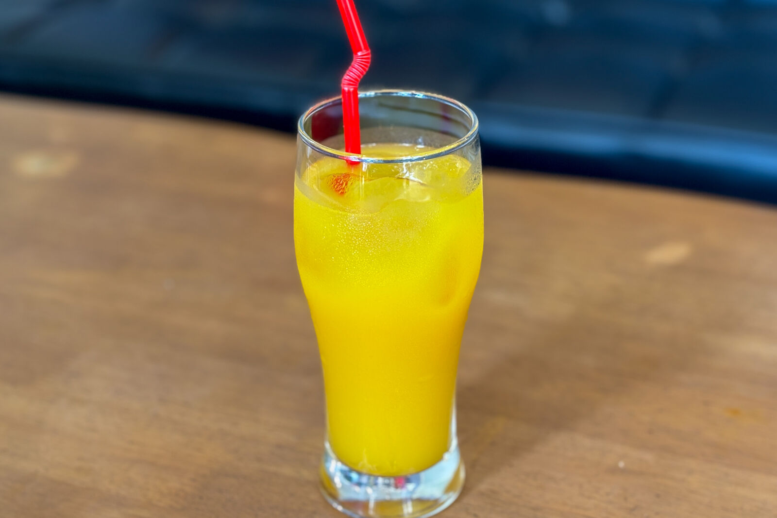 セットのドリンクはマンゴージュースを注文。南国雰囲気の店内で飲むトロピカルなマンゴージュースは絶品でした!