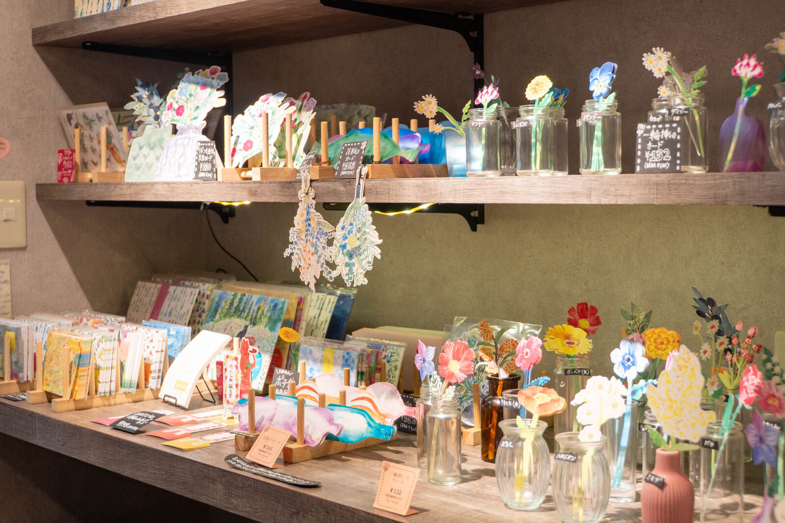 お店の入口には可愛いペーパークラフト商品も取り揃えているので、チェックしてみては!