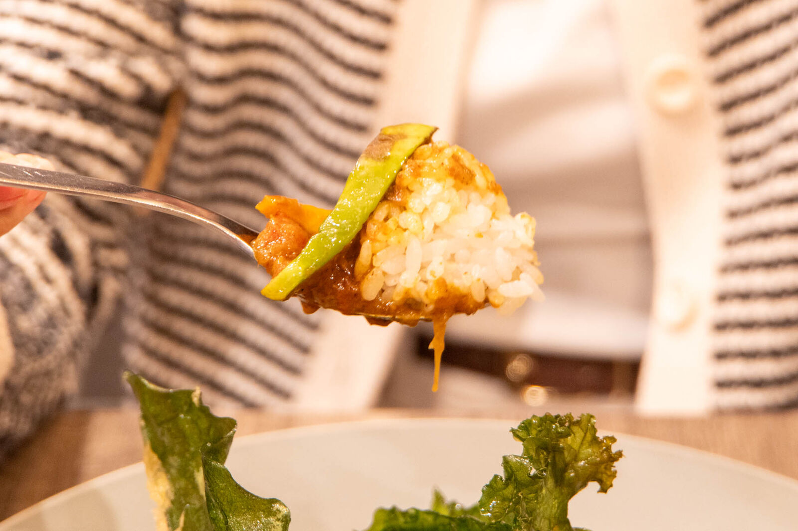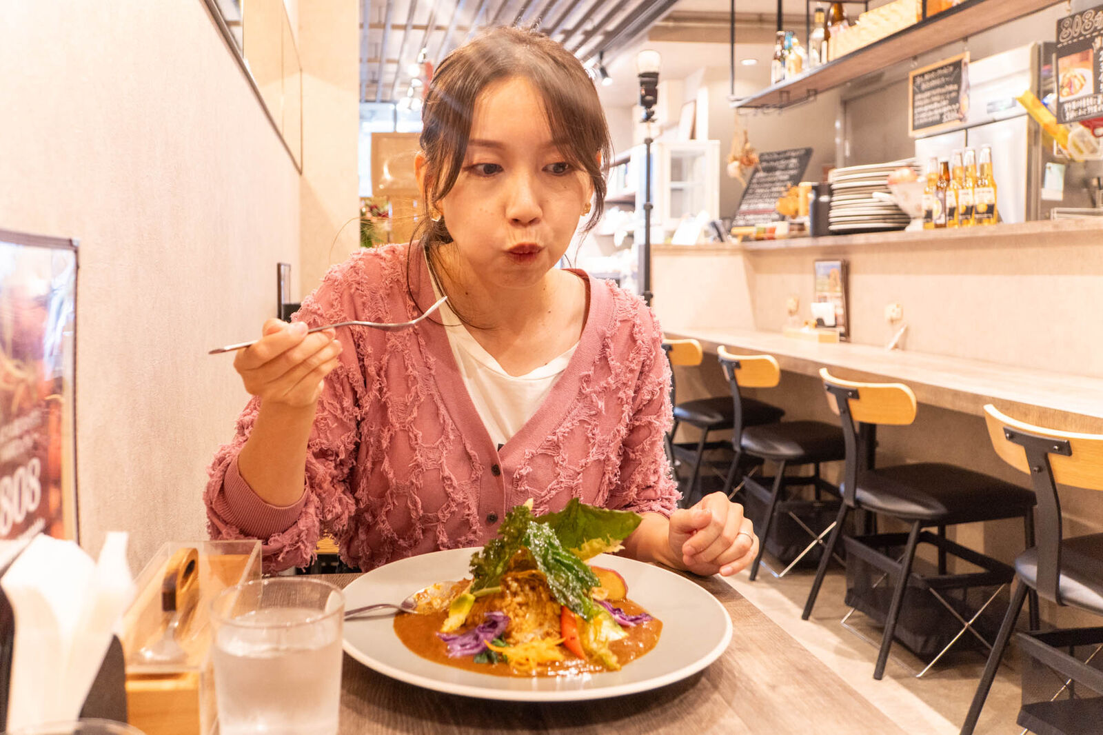この日はなんと20種類もの野菜が使用され、種類によって調理法も変えるこだわりぶり。とろとろのカレーは程よくスパイスが効き、野菜の旨みを引き立てる役割を果たしています。