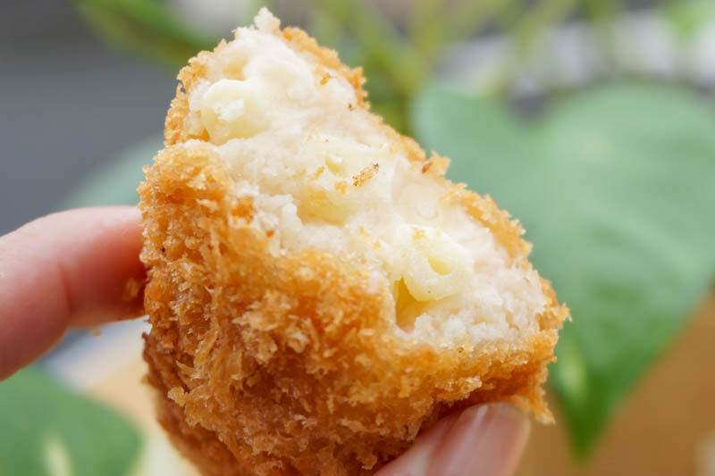 グラタンコロッケは、中にマカロニとかが入っていてめっちゃ美味しい〜。クリーミ〜!