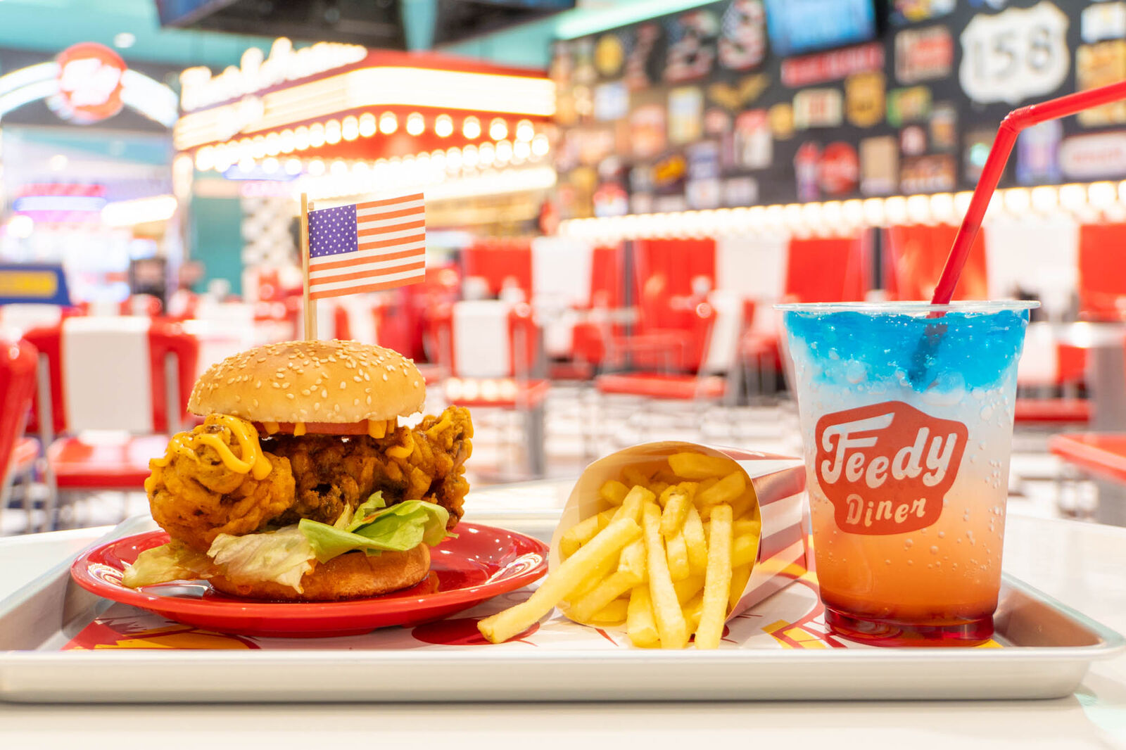 アメリカンな空間の中で食べるアメリカンなフード&ドリンクは最高!