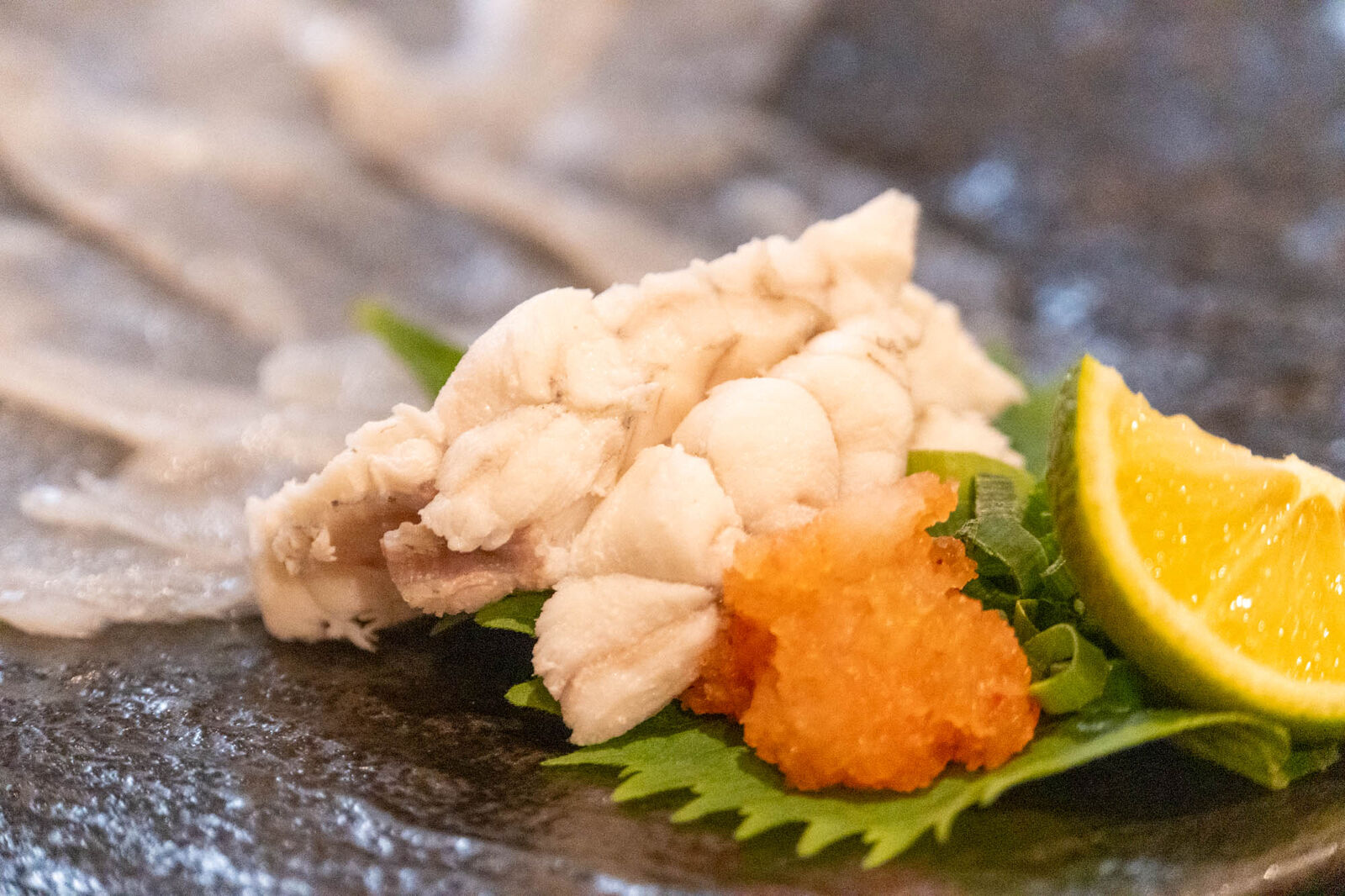 ふぐの身は弾力があって小皿料理ですが、食べごたえをしっかり感じます。もちろんお酒にも絶対合う!