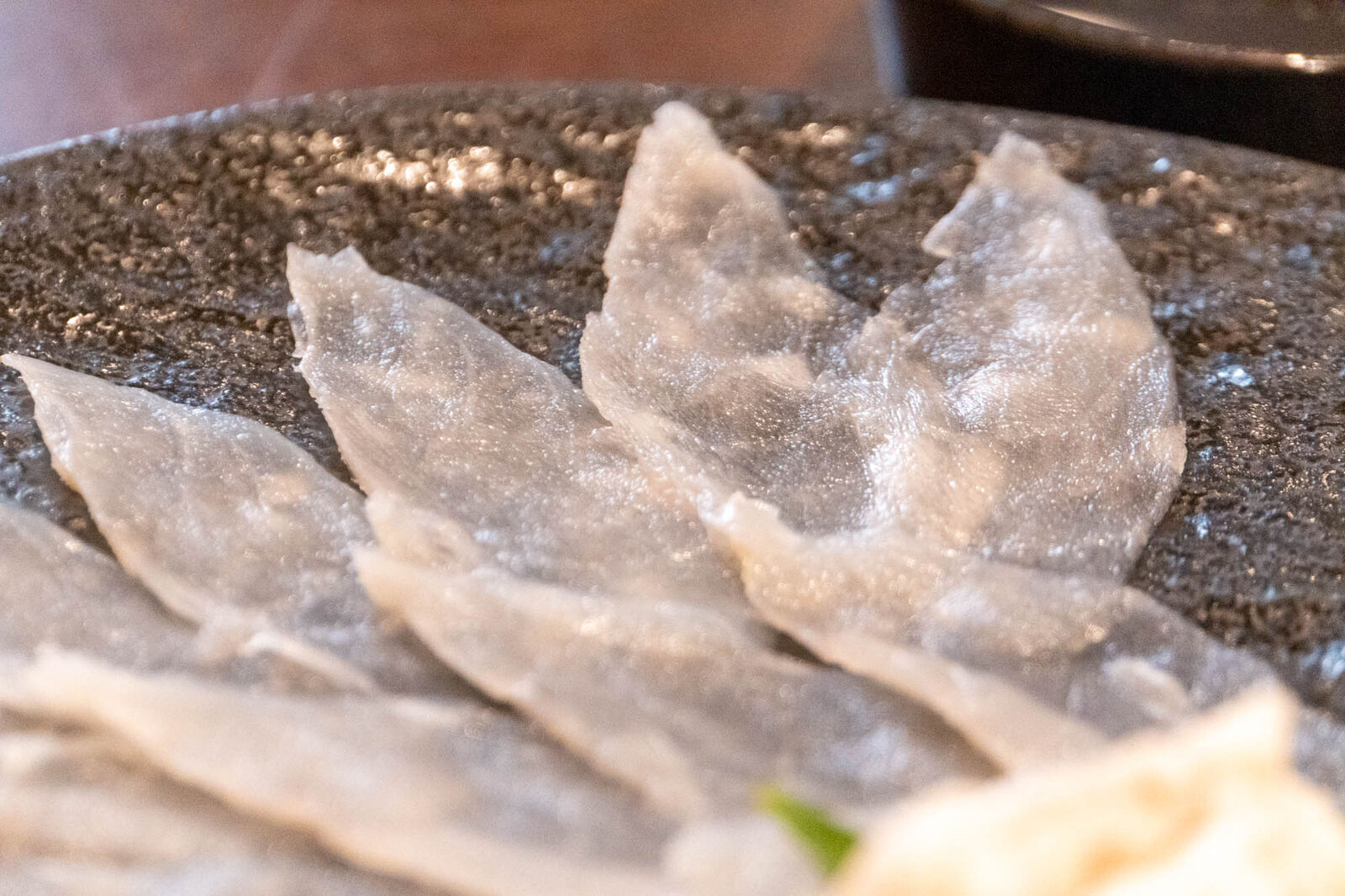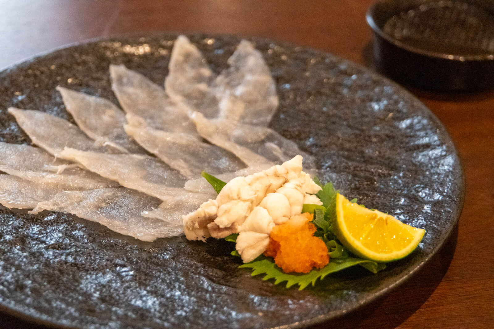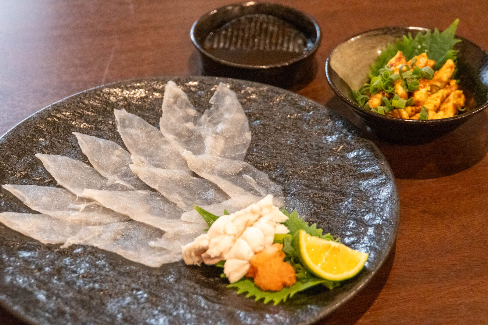 「ふぐと鉄板焼きがぶ飲み酒場」の『とらふぐのてっさ』など(高槻センター街)【たかつーグルメ】