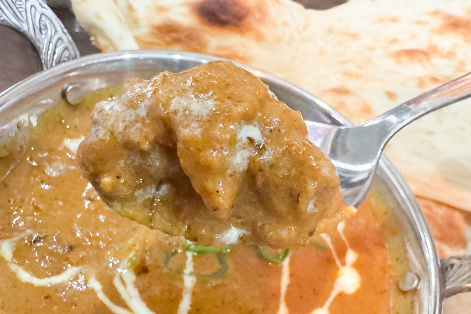 ナンにつけていただきます~!色んなスパイスの香りと味が鼻と舌と突き抜けます~!!
