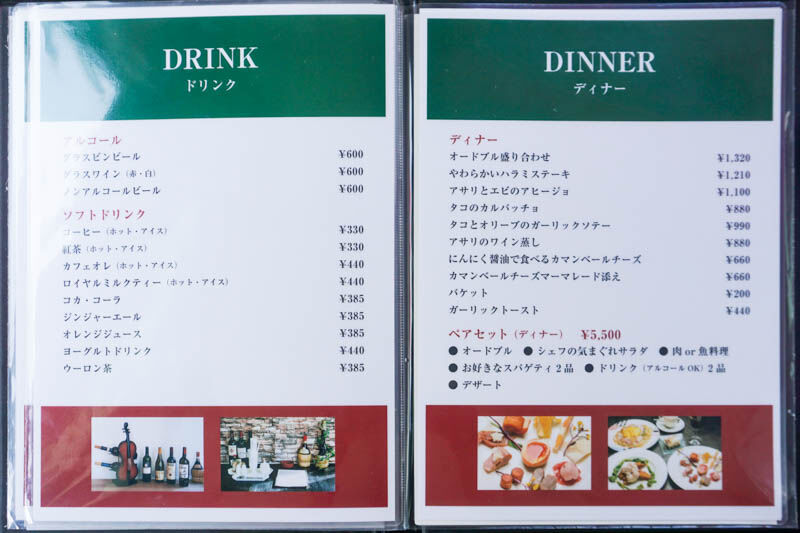ドリンク・ディナーメニューなど↓