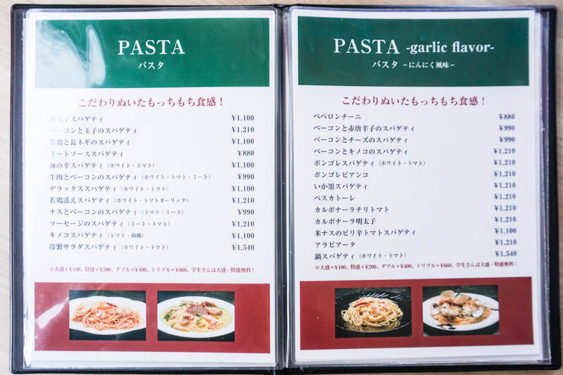 パスタは大盛りや特盛、ダブルなんかもあって、たくさん食べたいときにもめっちゃ嬉しい!