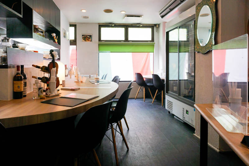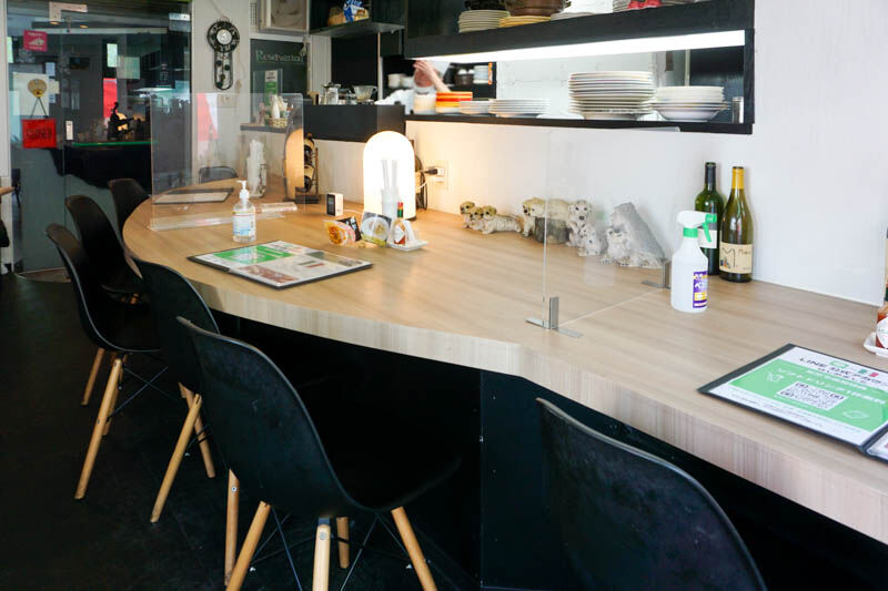 カウンター席はテーブルが大きめのゆったりした雰囲気!