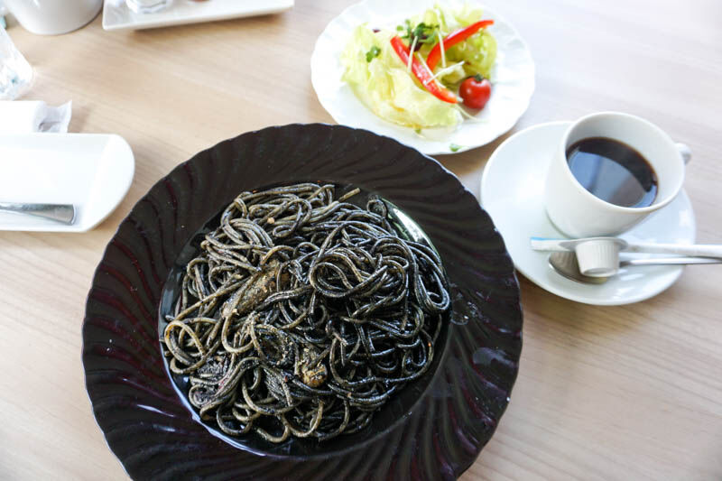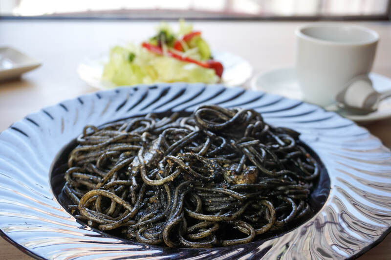 今日頼んだのは「イカ墨スパゲティ(1210円)」!イカ墨は小さいときに食べた以来…。どんなパスタかすごく楽しみ!