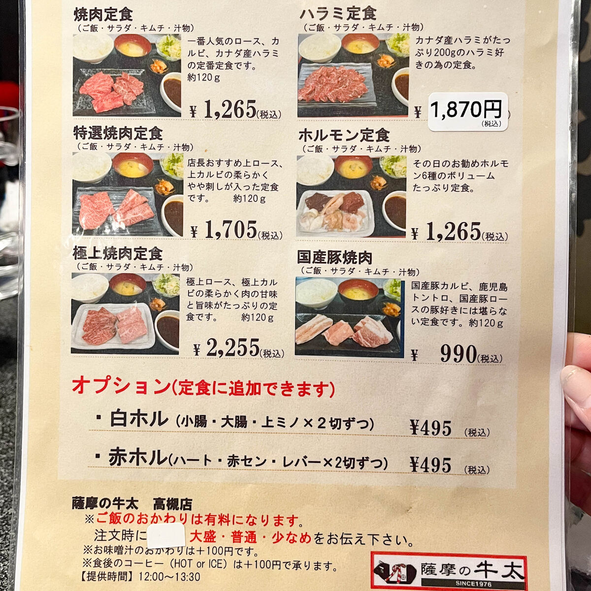 「薩摩の牛太」の『焼肉定食』など(高槻市土室町)【たかつーグルメ】