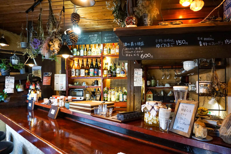 「裸足のマミさんの店」は、自然農・裸足ランニングを実践する店主のマミさんがいるお店。全席カウンター席で、お店の方との距離も程よくて話しやすい雰囲気。