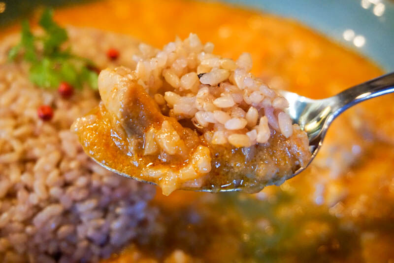 スパイスから作ったカレーは、通常コクを出すために砂糖を入れることが多いそうですが、こちらのカレーは砂糖不使用で、玉ねぎとココナッツミルクで甘みを出していると教えてもらいましたよ〜。